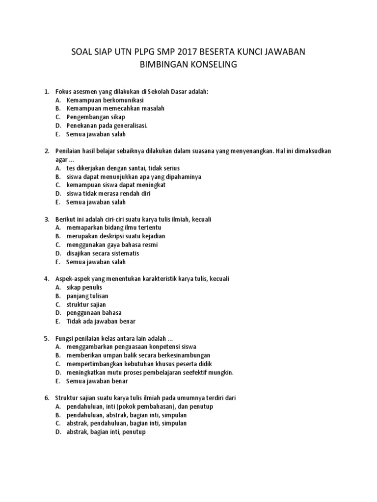 Soal ukg bimbingan konseling smp dan kunci jawaban.