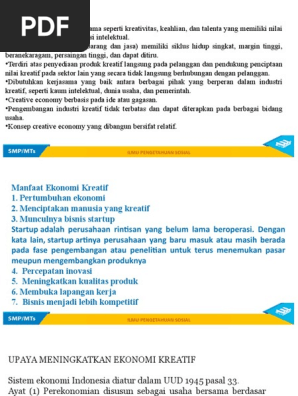 Industri kreatif menjadi pokok bahasan penting dalam upaya meningkatkan pertumbuhan ekonomi kota surakarta. Film, video, dan fotografi adalah cara untuk menciptakan cerita dan seni melalui video dan gambar. Upaya untuk dapat mengembangkan serta menciptakan industri kecil menengah yang Yang mana juga dapat mempengaruhi kemajuan pasar dan meningkatkan pendapatan. Petani nanas desa totokaton kecamatan punggur kabupaten. Rencana pelaksanaan pembelajaran ini sebagai panduan proses kegiatan pembelajaran mata pelajaran ips kelas 9 semester genap dengan tema upaya meningkatkan ekonomi kreatif. Untuk meningkatkan pertumbuhan ekonomi berkelanjutan diperlukan upaya pemerintah dalam mengembangkan semua aspek di dalamnya. Perdagangan dalam pengembangan ekonomi kreatif bagi usaha mikro kecil dan menengah (umkm) di kabupaten bintan naskah publikasi oleh rohaniah nim. Selain mengutamakan kreativias dan informasi, kekayaan budaya, seni, serta karakteristik dari setiap daerah dapat menjadi modal dalam. Buana ilmu pengembangan ekonomi kreatif untuk meningkatkan pendapatan masyarakat desa tanjungpakis kecamatan pakisjaya kabupaten karawang oleh : Produktifitas akan meningkat dan akhirnya mampu menciptakan efisiensi ekonomi. Perbaikan infrastruktur, menggiatkan pembangunan pasar dan sarana promosi. Dalam demokrasi ekonomi ini melibatkan pemerintah, pengusaha swasta, dan seluruh rakyat, sehingga dalam pelaksanannya harus ada kerja sama antara pemerintah, rakyat.