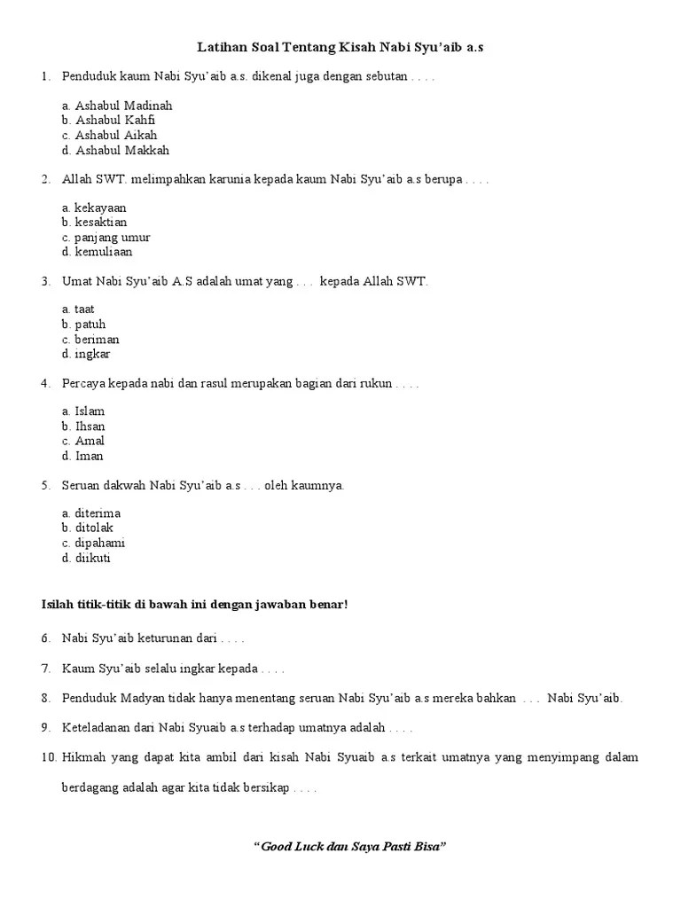 Ulama ahli tafsir quran asal rembang gus baha menceritakan pengalamannya ketika didebat orang wahabi soal tanggal kelahiran nabi muhammad. Belanja cerita teladan 25 nabi dan rasul plus latihan soal interaktif. Soal pai kelas 4 sd bab 3 kisah nabi adam dan nabi muhammad dilengkapi kunci jawaban keterangan soal : Meskipun kaya raya dan berkuasa, nabi sulaiman a.s tetap rendah hati, patuh dan tunduk pada perintah allah swt. Latihan soal pilihan ganda bab kisah nabi muhammad.